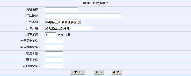4.广告管理 (增加或编辑首页图片广告)(程序默认隐藏图片广告,自行 生成所有广告的JS 即可正常显示)