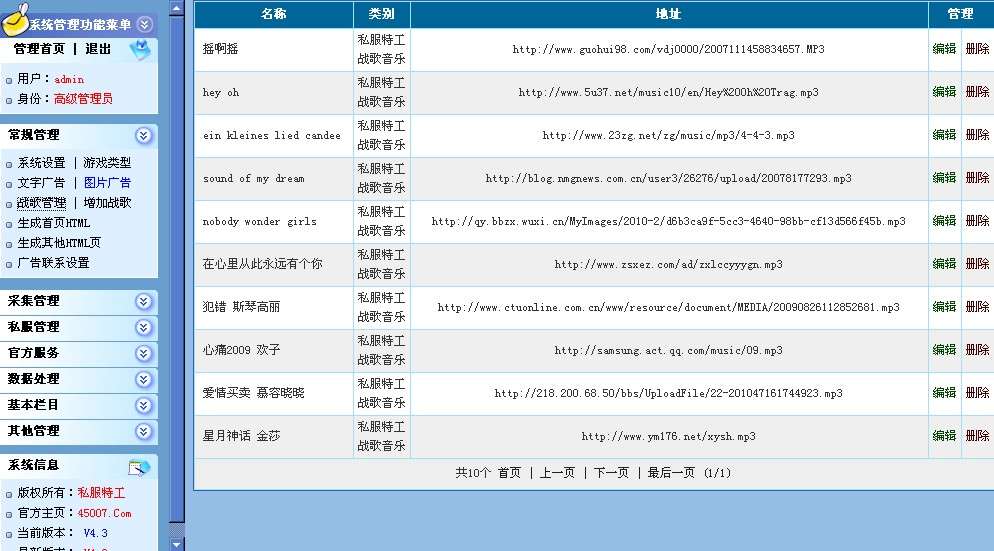 4. 新增战歌系统,战歌系统在后台可以 增加/编辑/删除 战歌,战歌系统名称也可以在后台自行修改