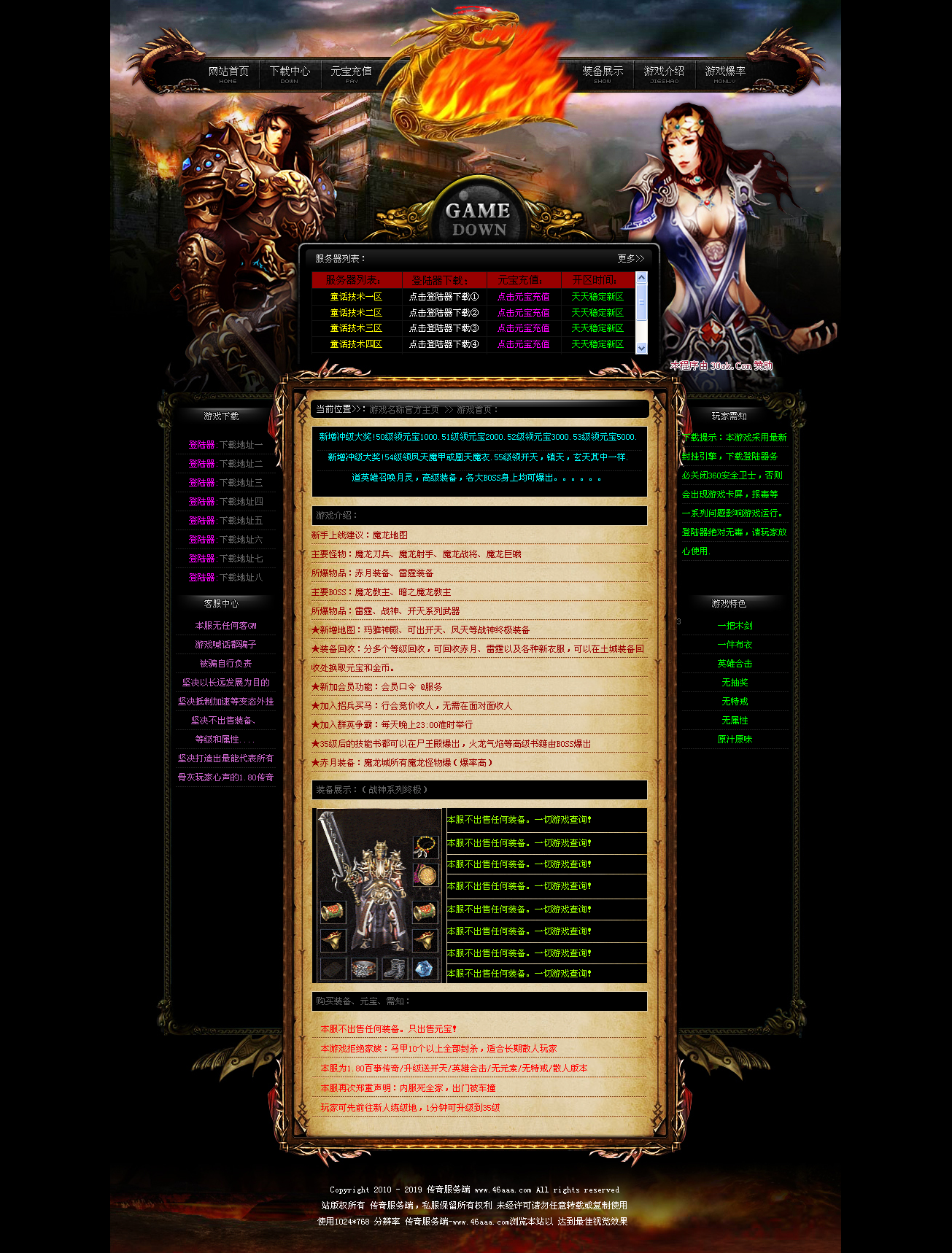 **目前市面上大部分免费模板都有加水印或是程序有残缺,我们都知道作为传奇私服的门面,拥有一套大方简洁绚丽的开区网站是很有必要的。