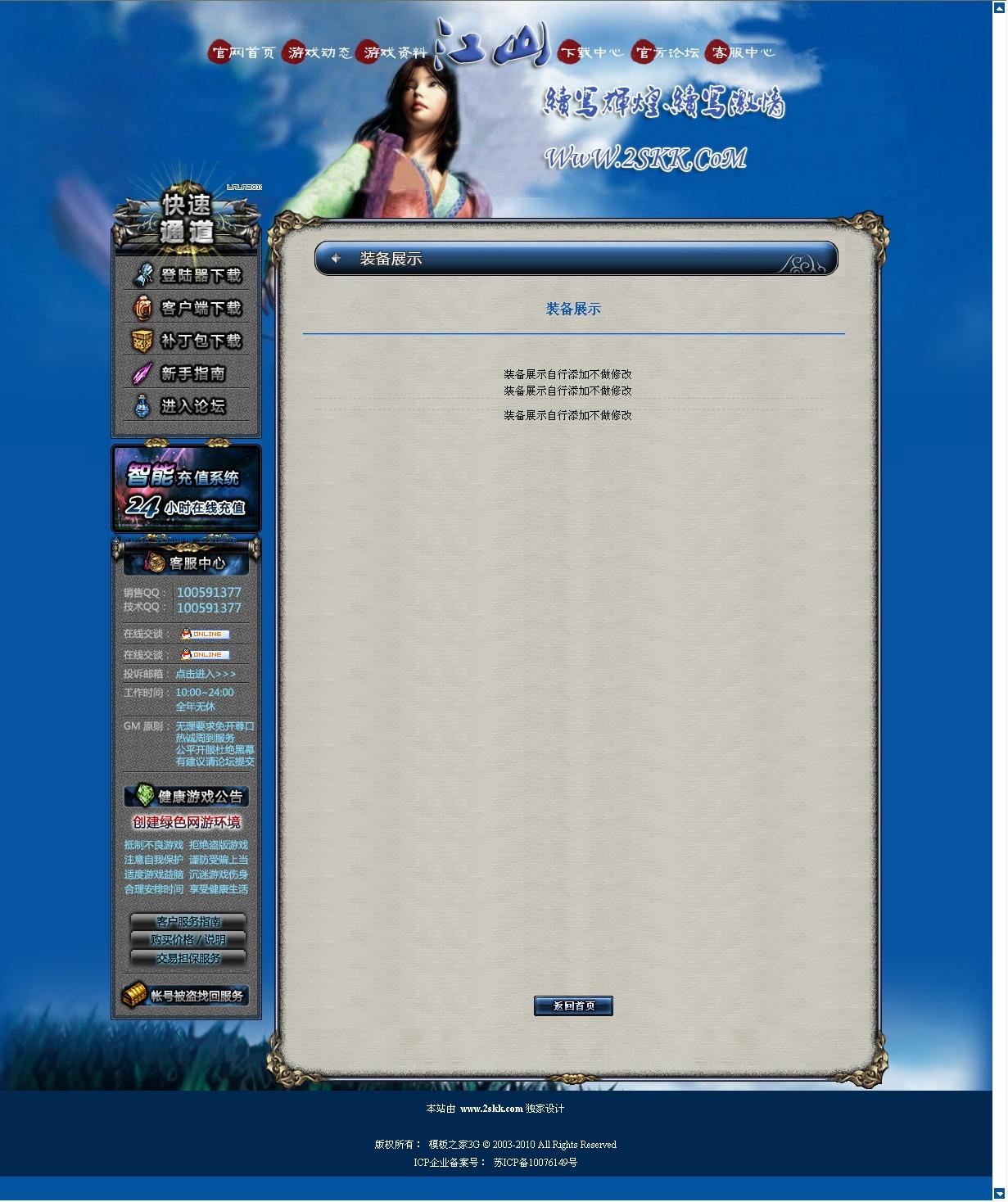 简介: 专业的美工,漂亮的格局, 游戏人物为背景,更突出游戏网站的魅力!