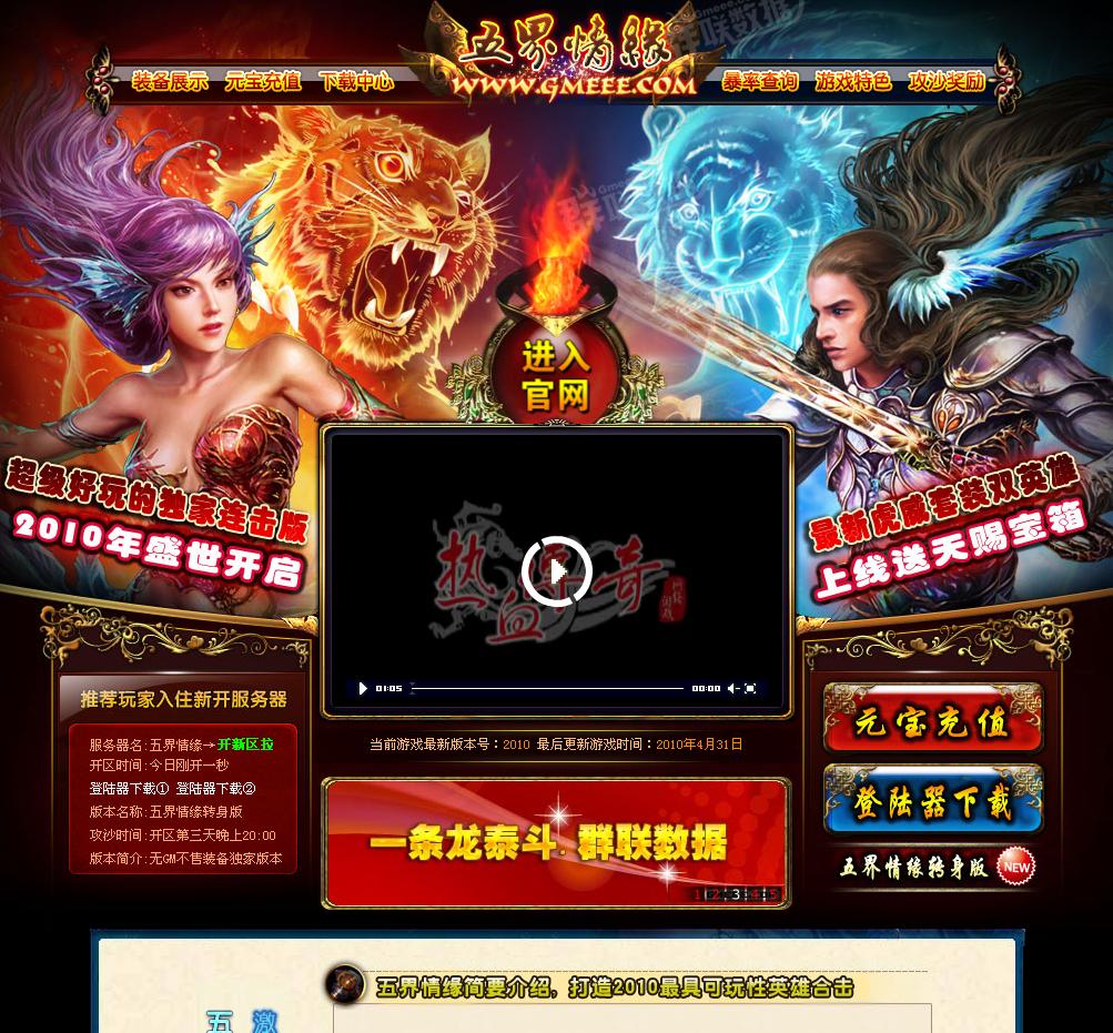简介: 整合10套精品开区模板,专业的美工,漂亮的格局,超级绚丽,游戏人物为背景,更突出游戏网站的意义,为你的游戏更添一份魅力!