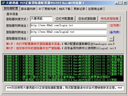 然后运行 大唐诱惑VIP正版登陆器配置器V0129(HeroM2内挂版).exe 进行VIP版的使用。