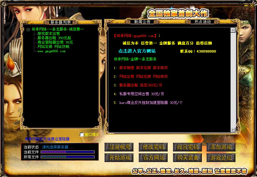 • ☉ 由于私服程序的特殊性,它非常容易被杀毒误报,所以自2011年1月起本站所有软件都不在做杀毒查杀,请下载后自行检测查杀!