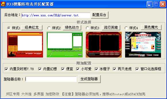 ·为提高安全 减小体积 配置出的登陆器请一定加壳