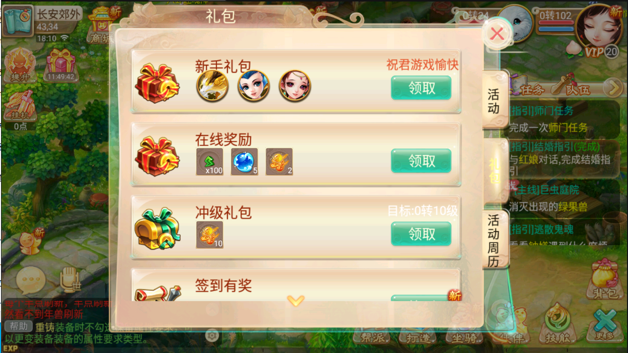 (已放新手礼包里面)新手礼包增加一个宠物镜花水月,宠物和人物修炼各三百个