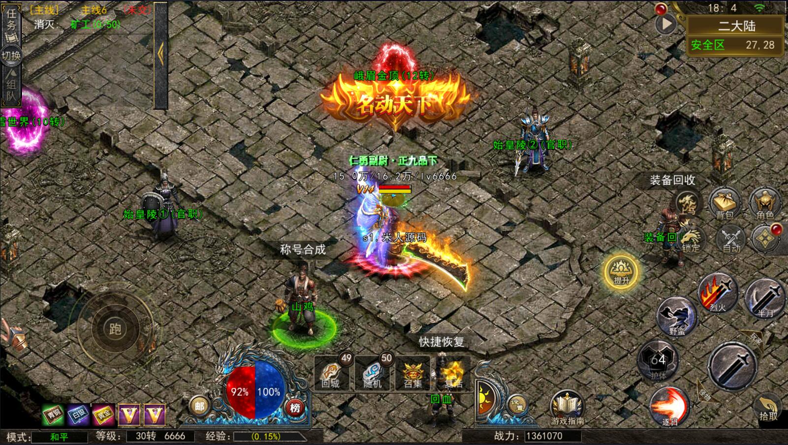 3.接下来就跟主线任务走.可以激活特戒和盾牌/斗笠后面刷怪PK就保障了.