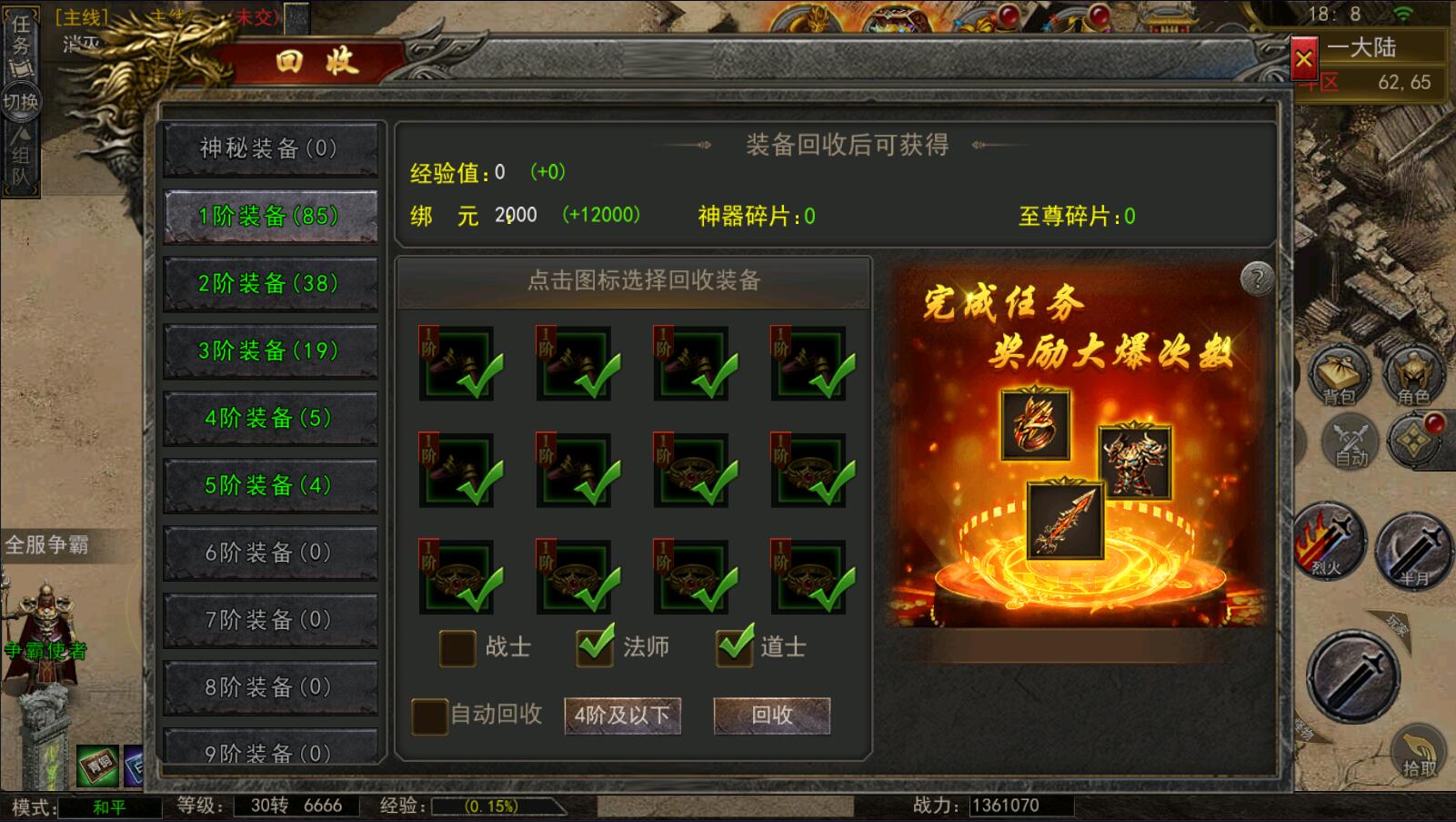 9.每日福利任务挂挂机就挣几百万元宝/海量材料/还有灵符.