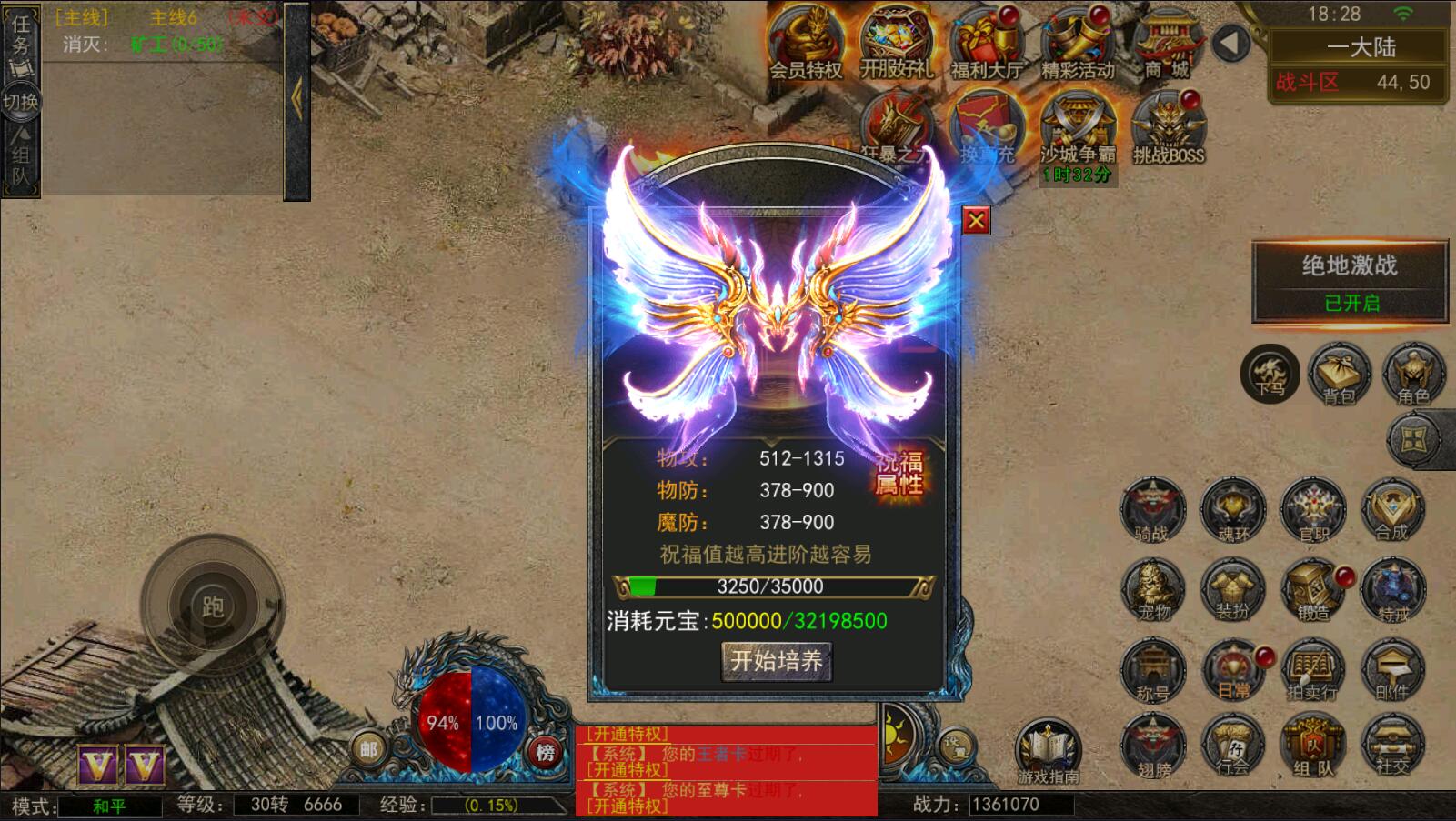 上线开启自动升级(500级)