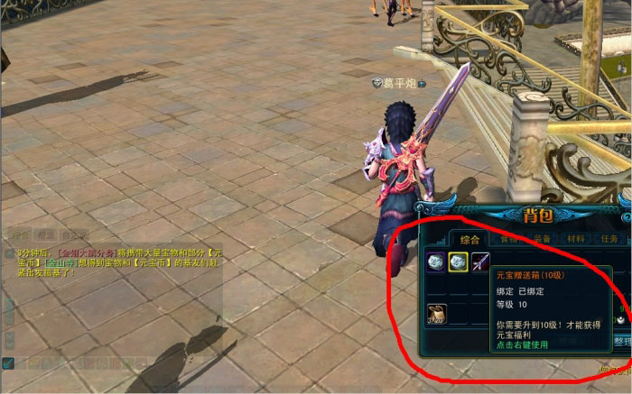 5.上线送元宝箱子(10级,20级,30级,40级,50级,60级,70级,到级别可以打开获得相应元宝。满级后每天 所得的活跃礼包能开出10元宝)