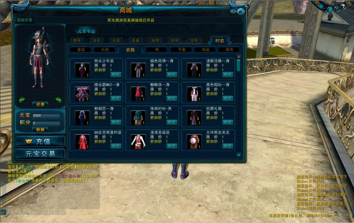3.完美仿官方商城(商业版)400多个物品(全时装,全宠物,稀有坐骑(套住玩家的那种)各种实用道 具,商城加了爆炎之刃做测试之用,不喜欢可以删掉)