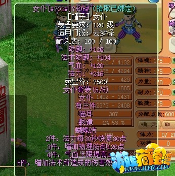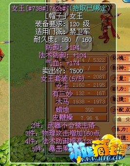 添加7个职业120级新套装(不变态,只是65级套装的一倍属性而已)