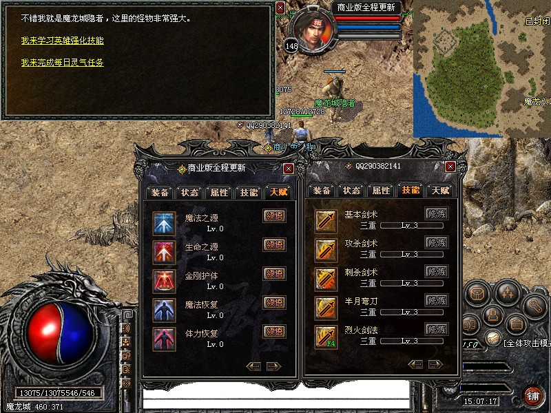 更多介绍请进游戏自己体验!英雄强化技能在魔龙城隐者修炼!游戏查询吧