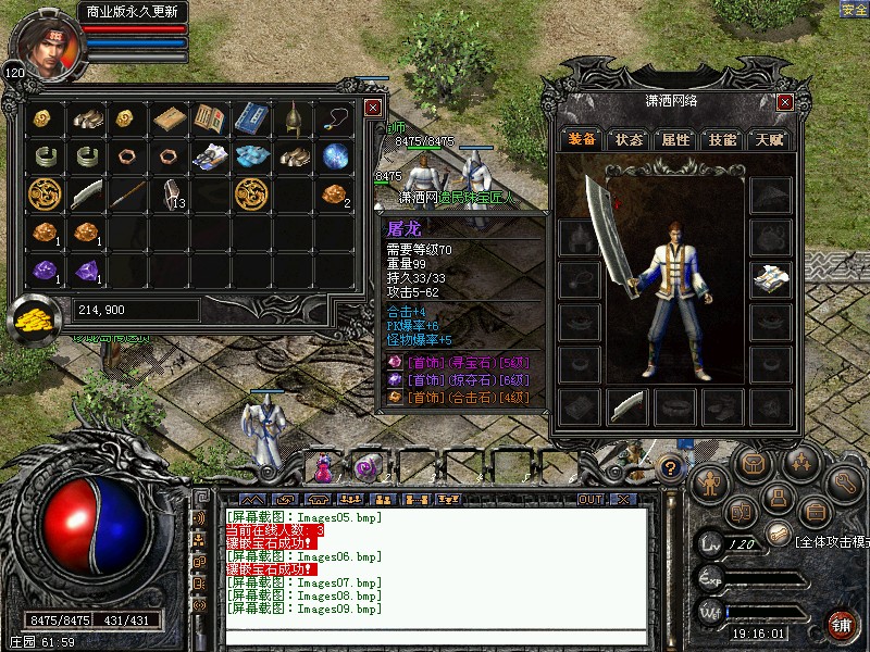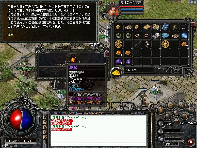 此版新增盛大装备打孔、宝石合成、装备镶嵌宝石等功能,