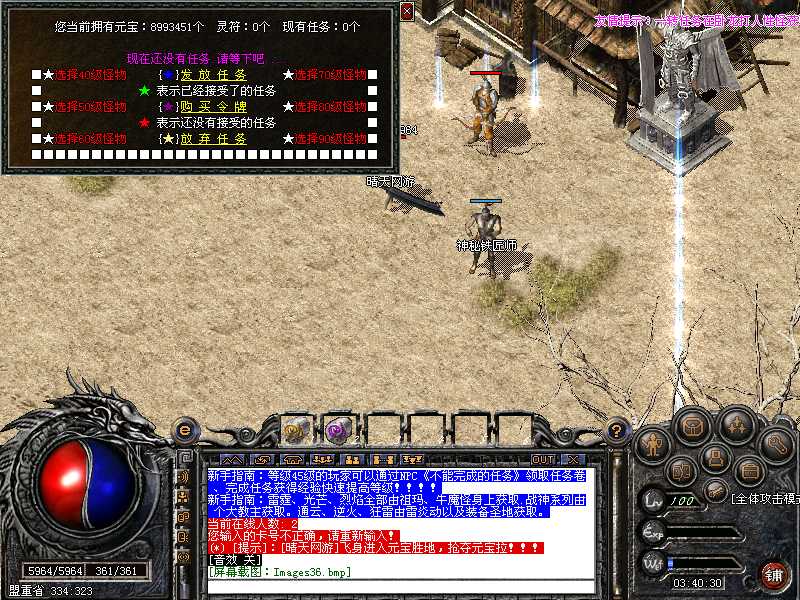 100%仿盛大,与盛大同步,新加入元宝抽奖.装备发光.表情界面.盛大外传任务系统和加入了自己的独特的任务系统!