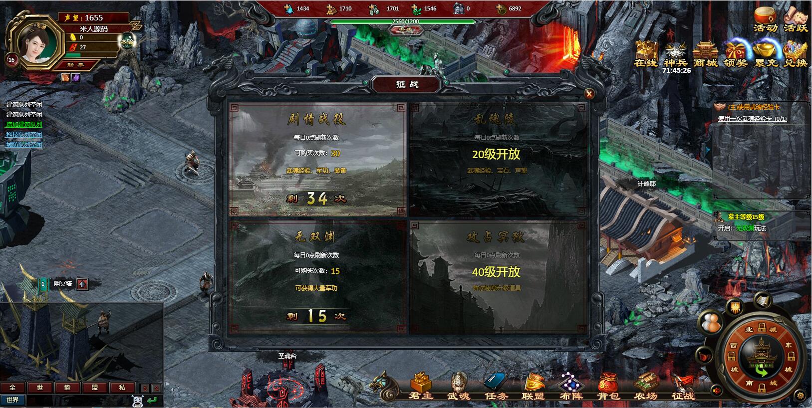 过完3个副本后就打不了了 自己通过提升各个建筑升级之后在过副本 随时查看自己资源是否足够升级建筑