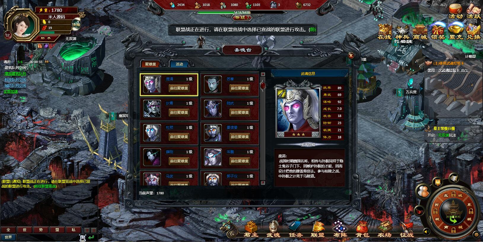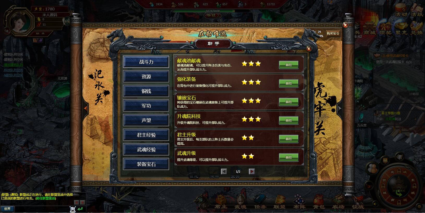新创建人物1级 根据指引精灵要求多招募一个武魂 结果君主等级不够 不用理会 一直点 然后根据右侧任务指引升级魂府即可