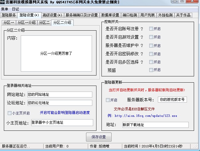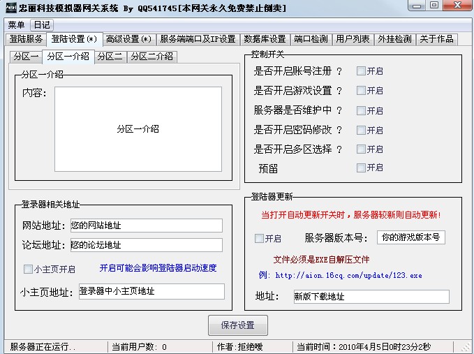 标题为:【4-9】更新永恒之塔网关+登录器生成器【支持多区,自定义防外挂】(永久免费+QQ群技术支持) 的文章