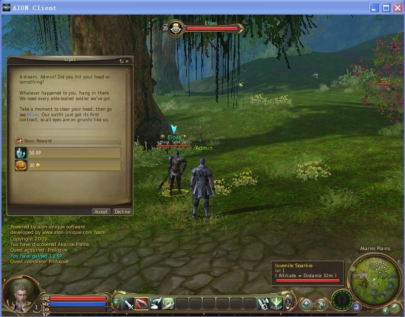 11月8日: 加入天族两任务,改进技能系统,请自行测试技能(技能的添加 请到au_server_gs里面的player_skills表里面去加,skillid请到gameserverdatastatic_dataskill_treeskill_tree.xml里面查,吃书的功能很快就会加入的 )
