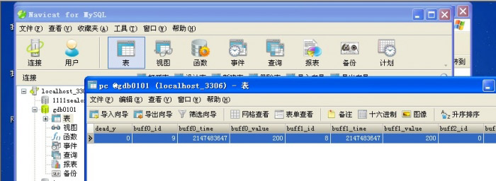 如果你觉得经验倍率太高,可以使用Navicat for MySQL 登陆数据库,删除掉buff即可 下图中的buffid为9的是经验,value代表200%倍的意思。(该数字不能改大,只能改小)