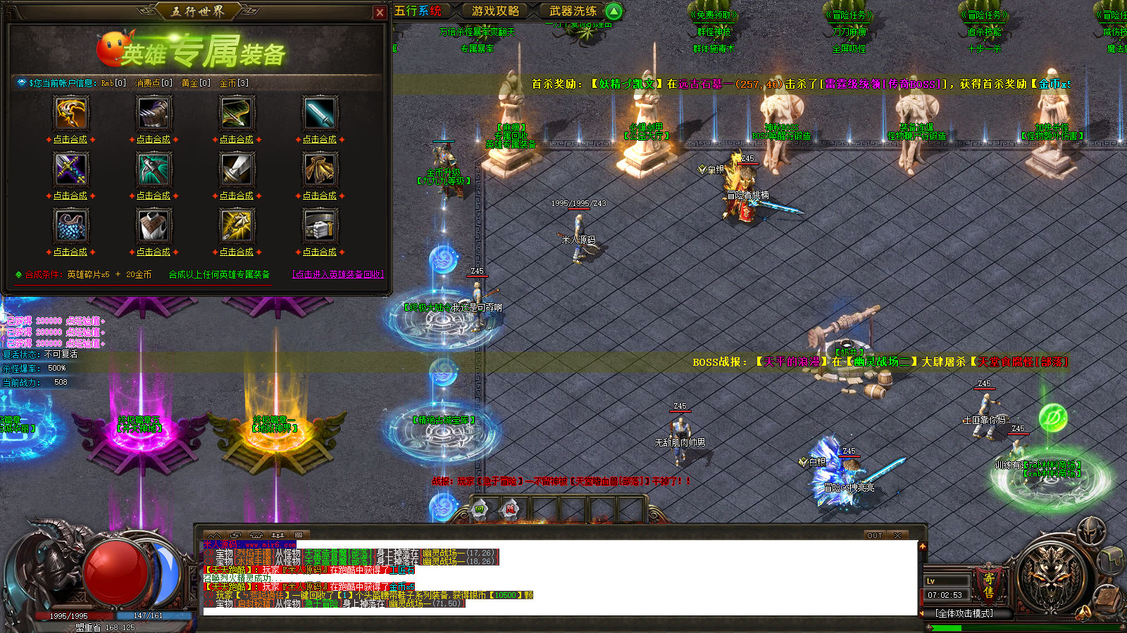 - ☉ V8引擎传奇端游【荒域专属单职业九大陆】Win一键端+配套补丁网站+架设教程