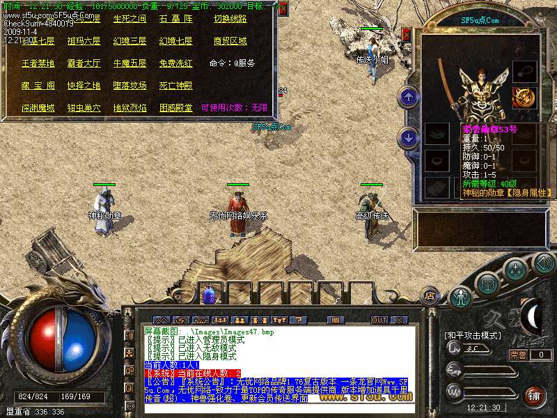 <151,252>『系统公告』:增加53号勋章(隐身属性),更新赌场方便GM管理,此版本为无忧提供的免费测试版本,拿来开区遇到问题后果自负