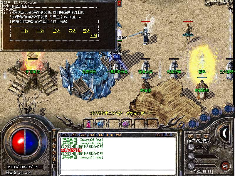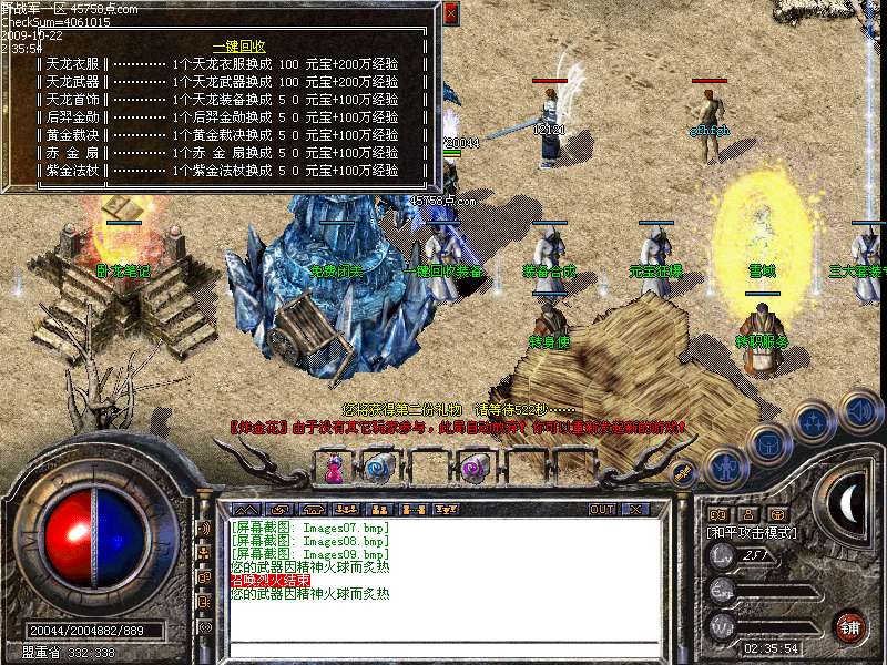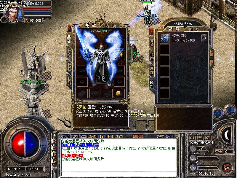 [重要通知]本服务器为盛大最新倚天版本,许多设置与以往不同!123级之后请不要直接使用聚灵珠(小)或聚灵珠(大)升级,最好的办法是使用聚灵珠(小)或聚灵珠(大)把经验攒满后进挂机地图升级或者打怪升级,这样就没有问题了!!!本服务器的转职服务请您考虑清楚后再进行职业转换,特别是英雄转职服务,英雄转职后技能需要从新修炼,在英雄管理处点击需要学的技能,这时候您的英雄等级不变,但是英雄内功等级将变成1级,相当于一切从新开始!!!本服务器为最新盛大倚天版本,新人上线请选择去猪洞七层,或者其它有白野猪的地图来打装备,白野猪爆新人装备[王者系列、锐风系列、元宝等],暴率为1/5,多的装备还可以在合成师处合成高级别装备,本服务器所有装备靠自己努力打怪获得,客服不会出售任何装备道具,请您放心游戏!!!
