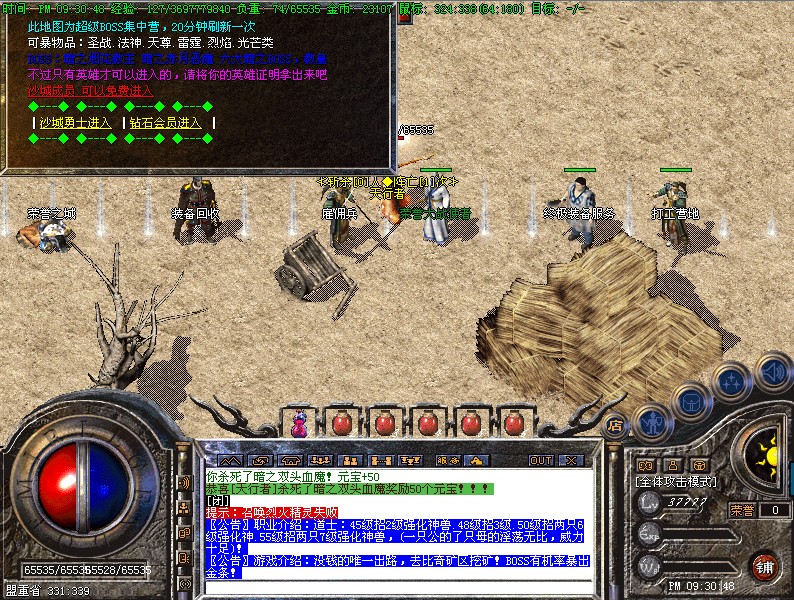 9.系统金币可通过挖矿迅速获得.声望卷在各大小BOSS身上,白野猪身上都可以获得.