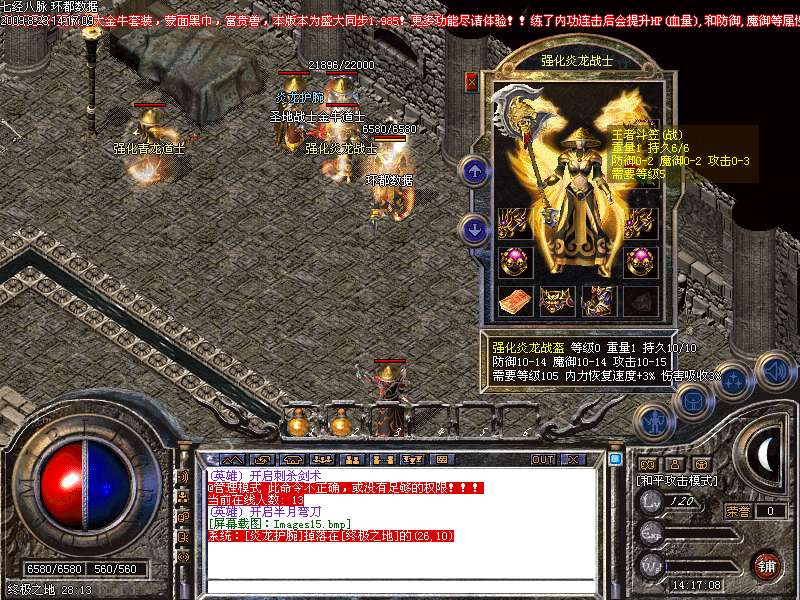 冲级到128级可以奖励炎龙,雷龙,青龙套装