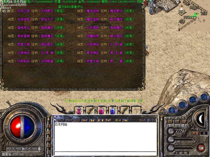 15.【特别地图】六道轮回,共七层,每进一层难度增加,闯过六层可以领取200元宝奖励,或者进入终极轮回之地挑战终极BOSS,此地图暴率非常高!