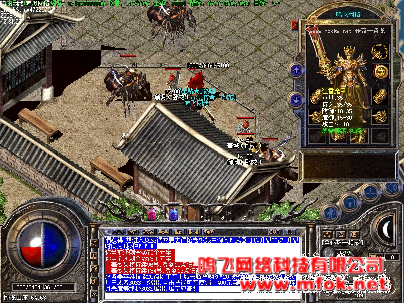 鸣飞科技的本版本是传奇外传、复古、英雄合击完美融合,等级非常好升、PK超爽,让你体验新装备体系及武器升级系统、装备星级、拍卖、闯天关、开宝箱、狂爆元宝、独特副本地图各种大型任务,结合了传奇、征途游戏精华,真正引领牛年传奇主流趋势。