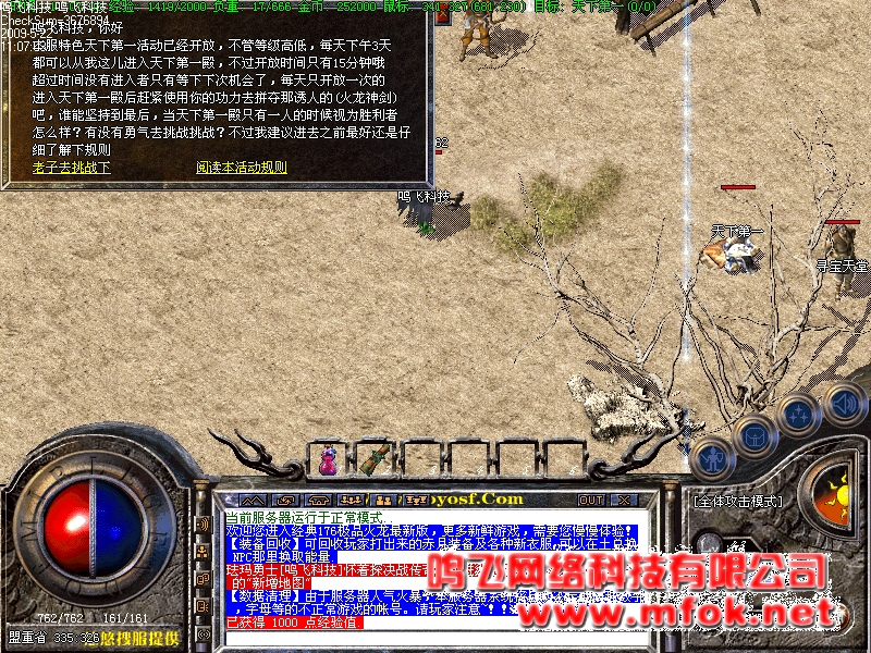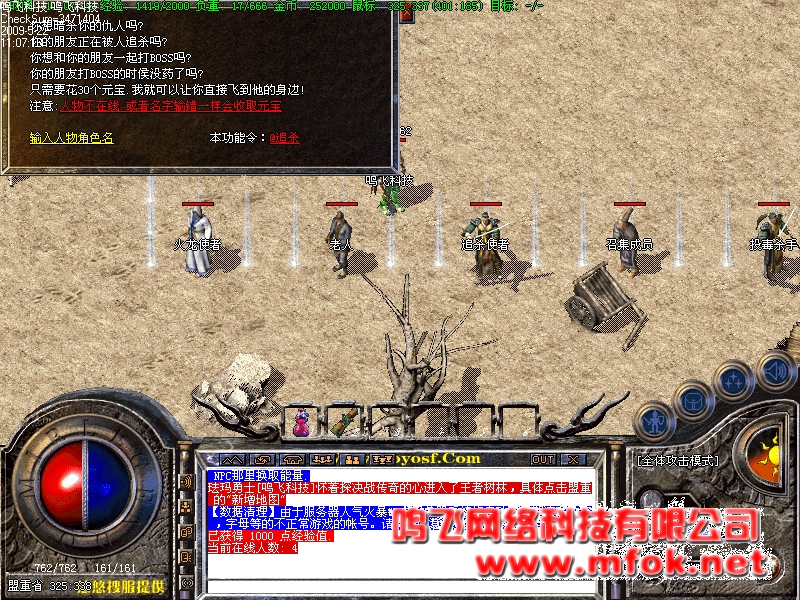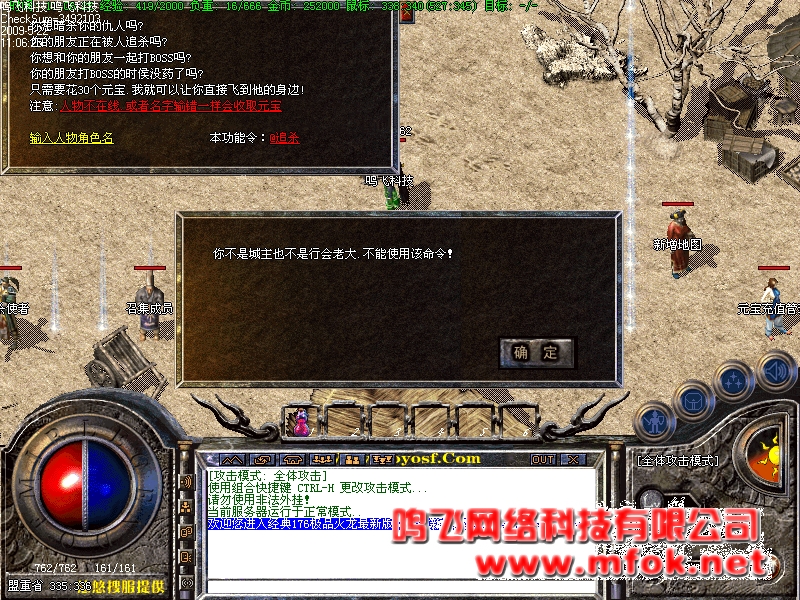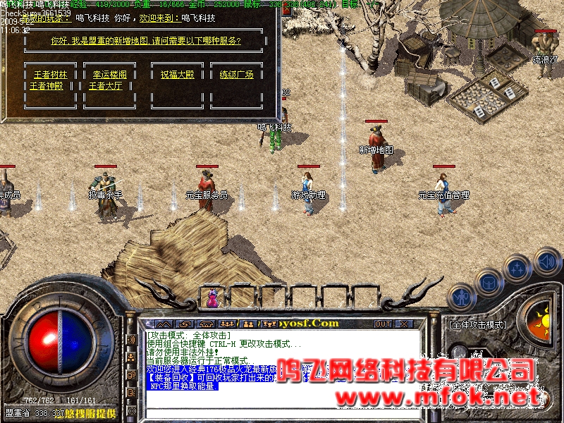 【防止被骗】请玩家注意.很多骗子利用非法手段.起空格名字站在NPC喊话装备半价出售.使玩家误以为NPC自动喊话.望玩家小心.不要贪图便宜而被骗.如被骗后果自负!!请妥善保管好您的帐号资料!找回帐号、恢复人物,联系客服或发送ID 密码提示 生日到管理员的QQ:175611123