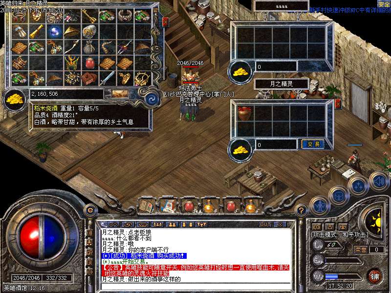 虎骨酒----增加攻击上限,魔法上限或道术上限2点,效果持续600秒,还能使酒量