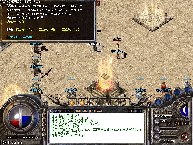 金牛剑阵:启动剑阵 可获得经验 元宝 各种药水 各种BB 还能召唤出摇钱树