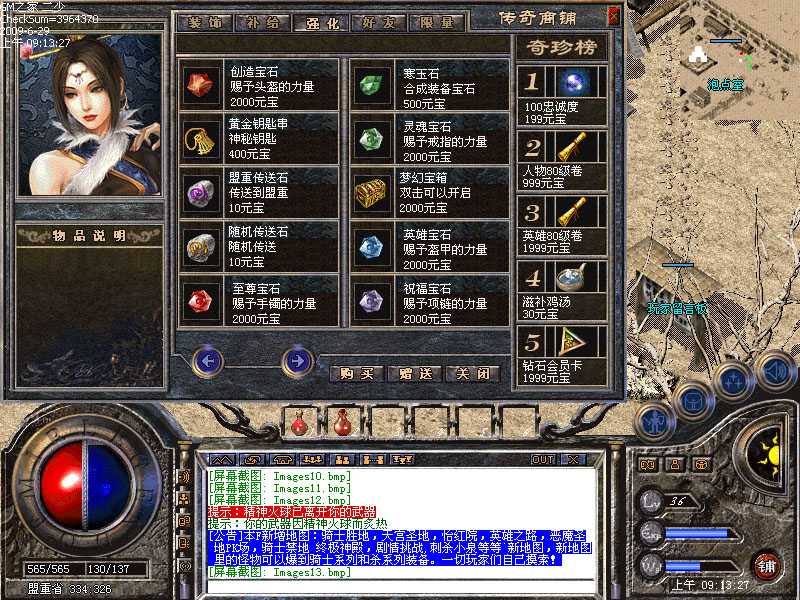 最近骗子猖獗,请大家千万不要相信任何人在游戏里购买元宝或者装备!一切后果由自己承担!!!元宝不能冲值的请到网站首页查看新闻!本游戏禁止使用外挂或者加速!如发现玩家在使用马上封号封IP处理,绝不留情!请玩家禁忌!!如果不能正常游戏请下载专用登陆器,下载地址:大家注意!GM不会向任何人要帐号、密码或装备!如果因为讲义气把帐号、密码或装备随意送人,本服务器不承担任何责任!