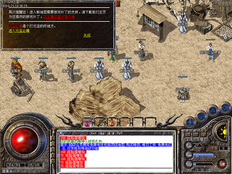 本服申明:GM绝对不参与游戏。盟重有装备回收NPC,不需要的装备可以在那里换成元宝和经验。