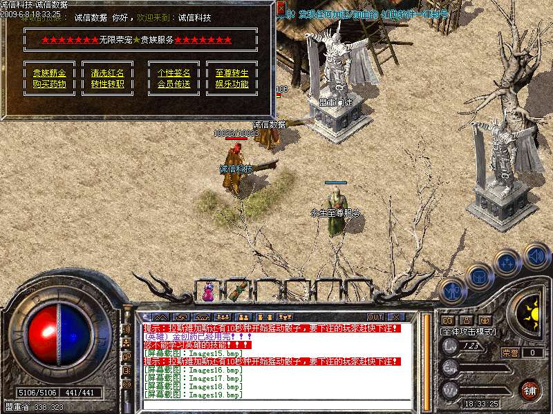 服务器最新加入幸运楼阁(幸运项链石暴率很高)/祝福大殿(祝福油的暴率非常高还有超级祝福油爆出)/练级广场(非RMB玩家的练级天堂),请玩家从土城新增地图NPC进入.