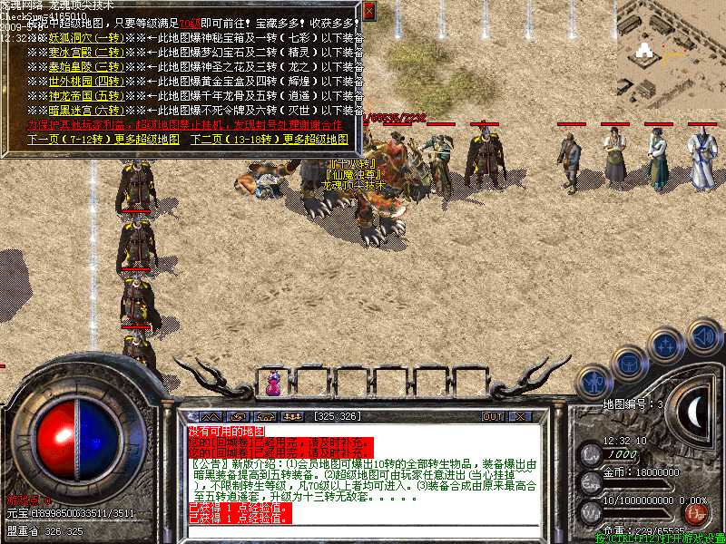原创合成系统,这种合成系统是市面上从未有过的,我们自己开发的最新合成模式,合成需要合成金丹,一般BOSS都可以爆出,如果您觉得麻烦,也可以找管理员购买,购买合成金丹来合成装备!原创超级地图:(狐狸,寒冰,秦始皇,世外,神龙,暗黑,幸福,枫叶,岩浆,太级,遗忘,混沌,古墓,神境,神谷,雄霸之城,雄霸净土)等等。还是打转生物品的好地方,进入高级层区不需要转生等级!封闭了网站挂机者刷屏给大家带来的影响,网站挂机泡点的玩家不会发出半个字的广告刷屏。土城安全区开设专门泡点,让玩家泡点安全稳定!