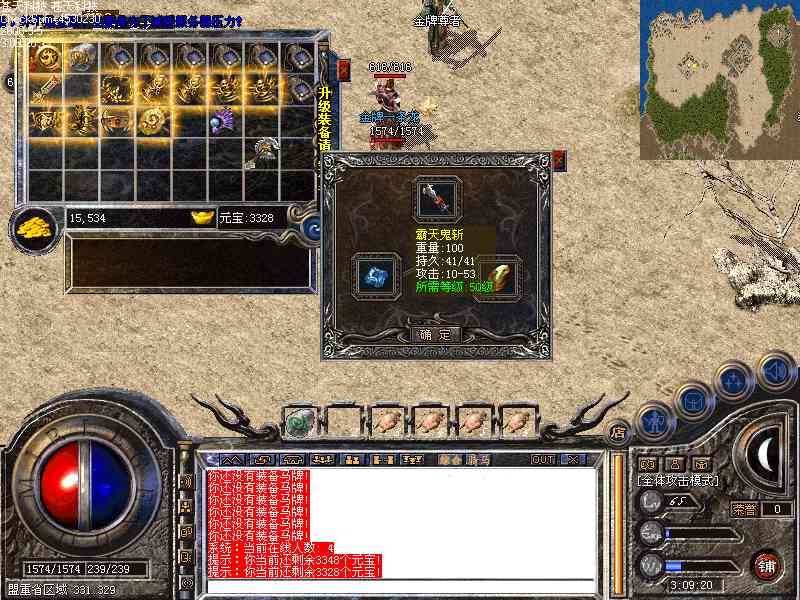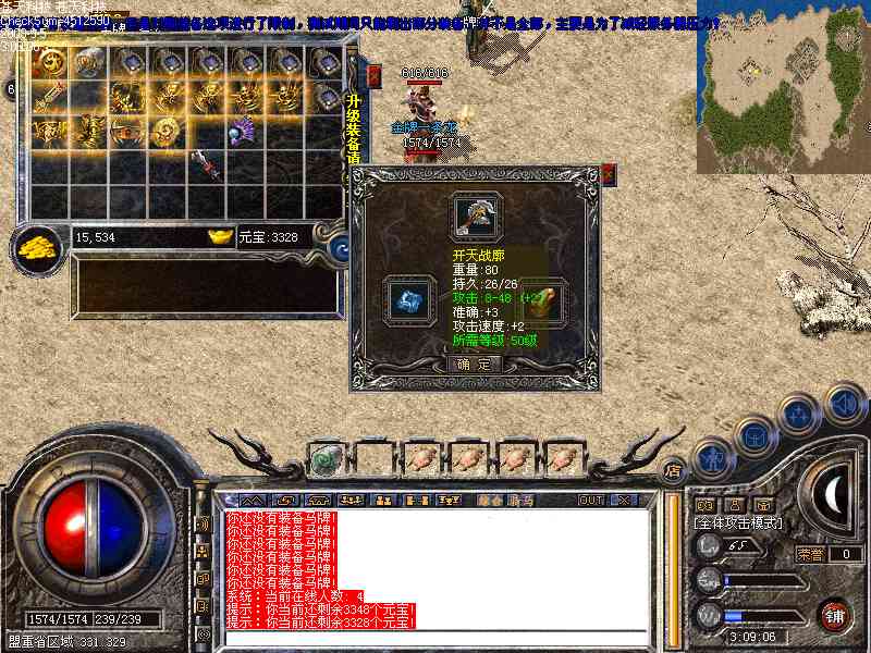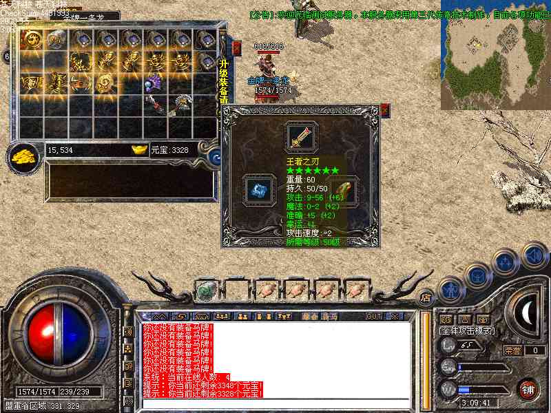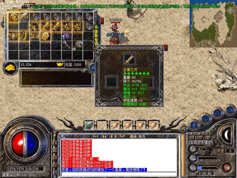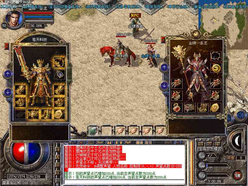 [装备系统]:完全仿盛大最新的装备,全部装备完全按照官方最新属性和外观,无需另外装备补丁,装备较多。