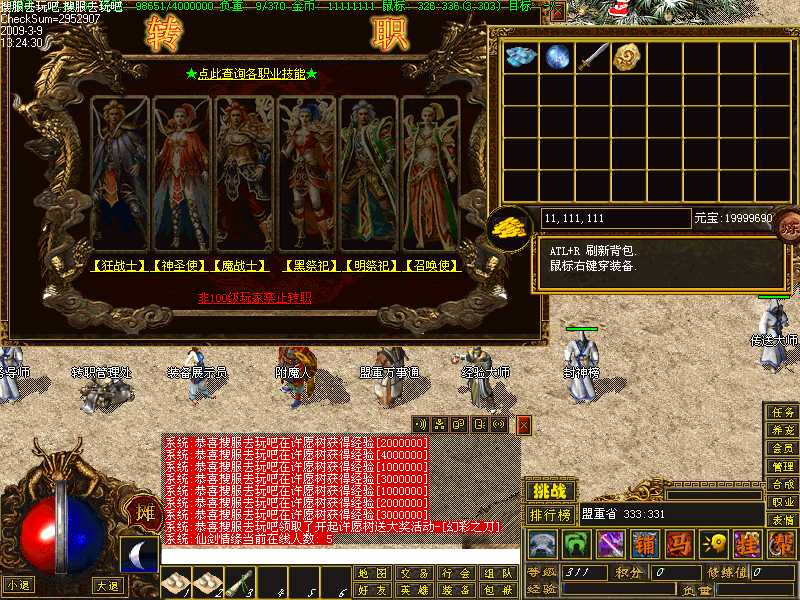 - ☉ V8引擎传奇端游【荒域专属单职业九大陆】Win一键端+配套补丁网站+架设教程