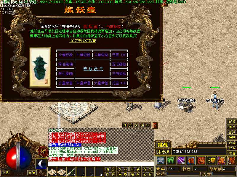 再次返回<渡恶、飞圣、火灵>三个地图杀死小怪获得30个<九龙神珠灵火>,杀死三个BOSS获得3个魔魂。