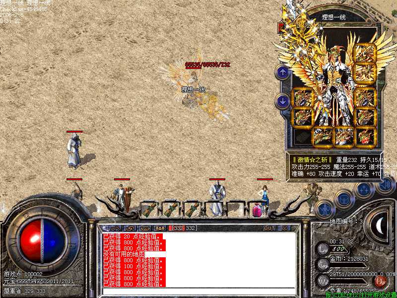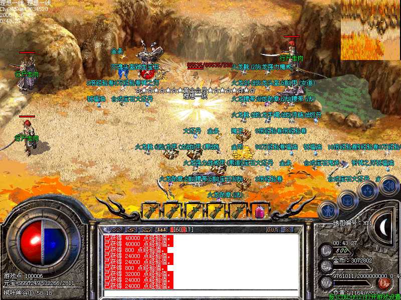 二:本服务器即陪练员系统之后,又开发了一套全新的练级模式:自动刷怪练级厅。在练级厅里不需要手动刷怪了,每搁3秒钟,大厅里就自动刷出怪物让你打。只要你站在大厅里,就会不断有怪物刷出来。进入地点,土城安全区找-高手练级员!服务器打怪经验为盛大的一万倍,爆率为100倍!300级‖獨戰☆兲芐‖套装在变态地图内可以爆出!