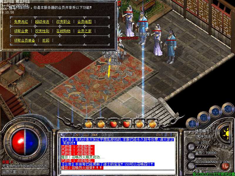 二:[更新]服务器新加5个副本地图,由传送员那直接传送,在副本地图打怪可获得历练值,通可历练值可提升修练度,按修练度的等级高低,能练习相应的技能!