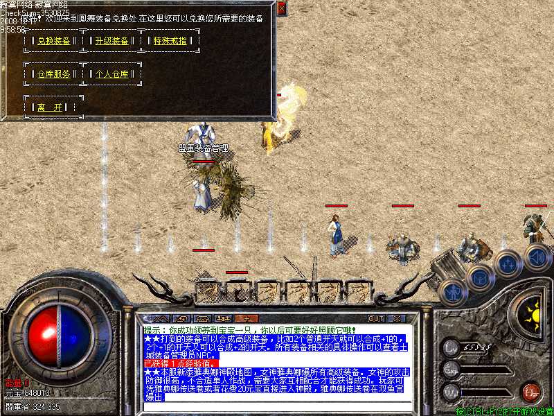 ★★打到的装备可以合成高级装备,比如2个普通开天就可以合成+1的,2个+1的开天又可以合成+2的开天。所有装备相关的具体操作可以查看土城装备管理员NPC。