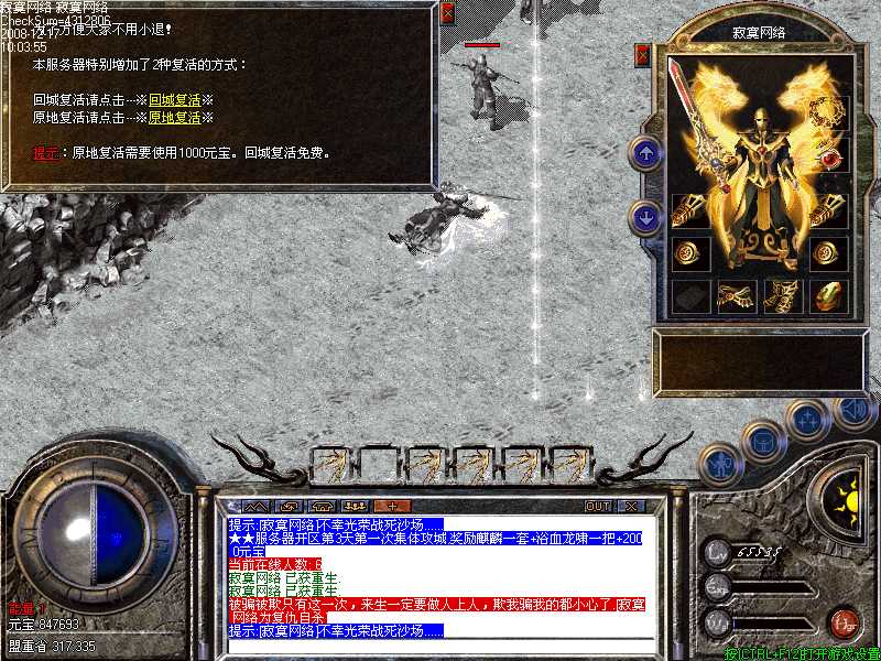 死了只要你有元宝可以在死的地方直接复活,复活一次1000元宝
