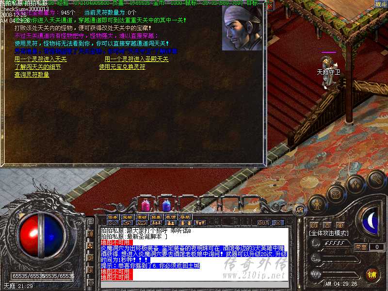 炎魔洞穴为出终极装备.鉴定装备的夜明珠可在.酒馆旁边的3大英雄中赌酒获得.想进入炎魔洞穴要去酒馆老板娘中询问!武器可以升级20次.升级时间为1秒种!!!