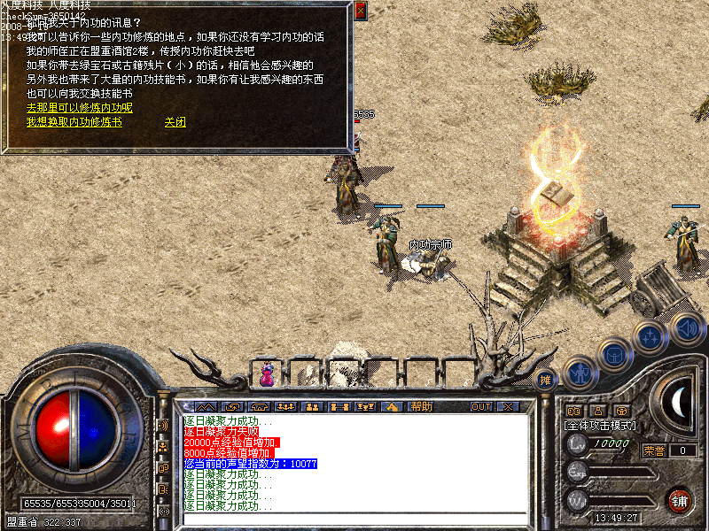 采集最近玛法大陆上新出现的神奇矿物绿宝石,交给盟重土城的内功宗师(323,340),以换取各职业的技能书。当你的内功等级修炼到一定程度,通过学习技能书就可以感受到自身内力对于原先技能的强力增强与防御作用。