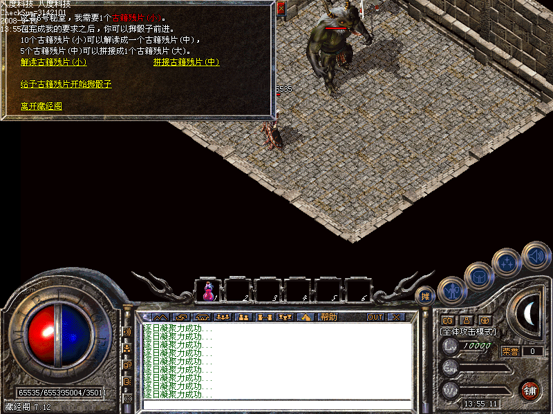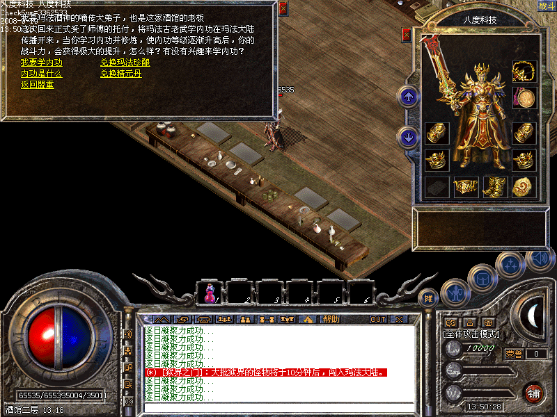 5.天龙八部增加装备升级装备系统!失败装备不会碎!(目前设定为战神,圣魔,真魂首饰+黑铁矿升级相应的装备属性/需要注意的是: 如果您的包里有战神,又有真魂的话,升出来的装备属性随机!升级装备的同时,清空背包!)