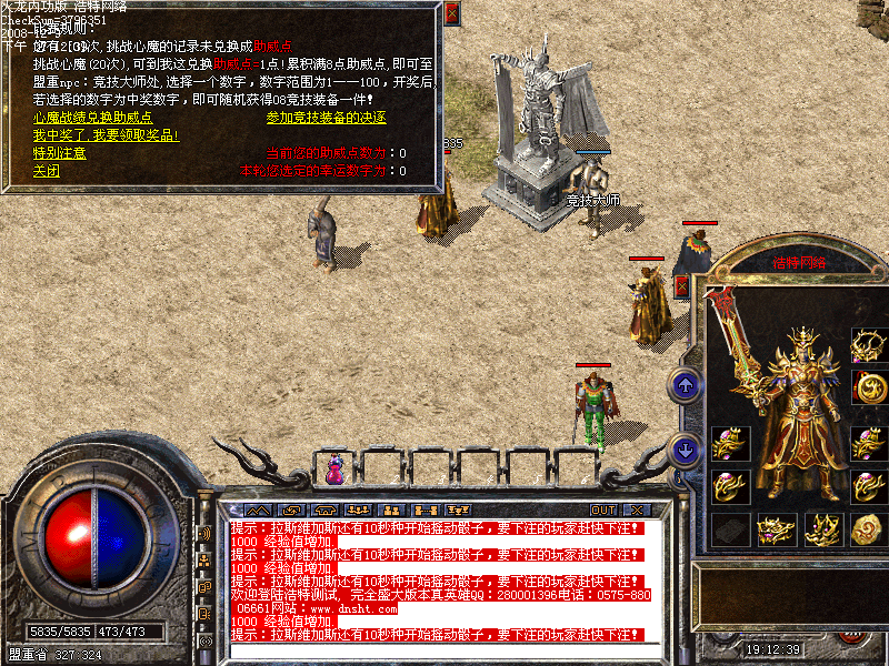 本服更新了很多活动,希望大家时刻观注,系统公告,活动奖励丰富,绝对值得你去努力!