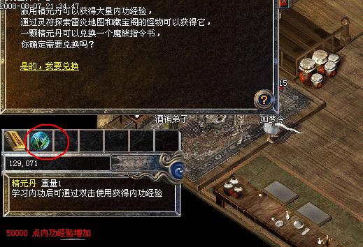(*)双击火龙珠,可获得100万经验,使用宝藏钥匙可开启卧龙山庄“神秘宝箱”,宝箱根据人物等级给予不同的经验。