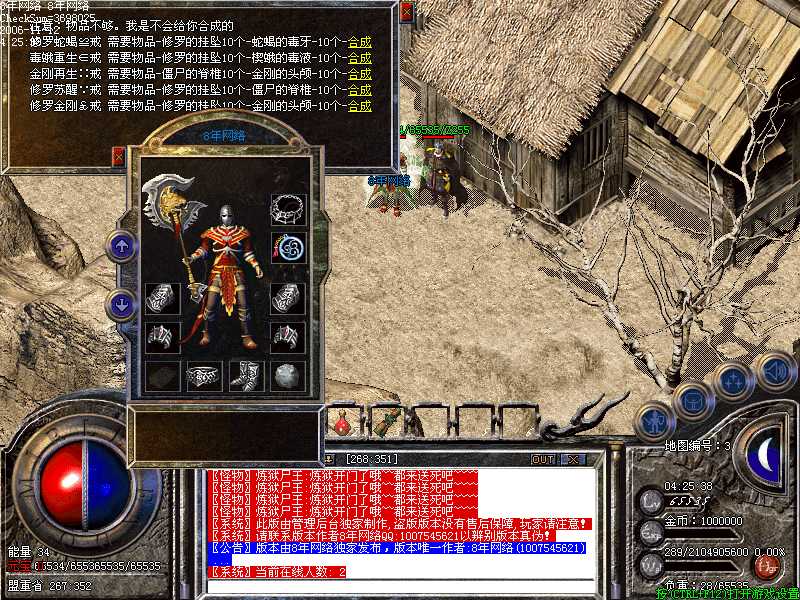 大家如果看到BOSS爆出特殊的物品.可千万别丢哦~那可是特殊物品呀。可以合成双属性戒指-合成地点:268:352